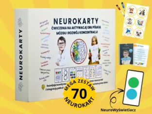 Neurokarty to zestaw ćwiczeń rozwijających koncentrację, skupienie oraz współpracę między półkulami mózgu u dzieci. Ćwiczenia, w tym specjalne ćwiczenia bilateralne, są zaprojektowane tak, aby aktywować obie półkule jednocześnie, co wspomaga harmonijny rozwój dziecka.